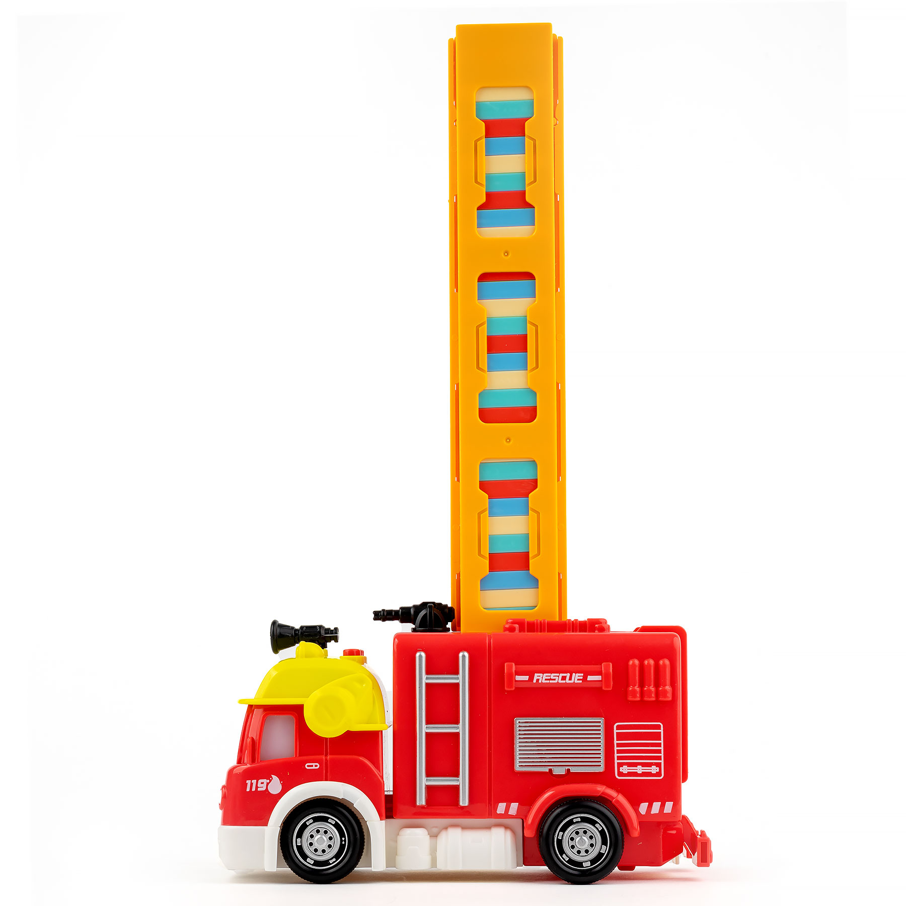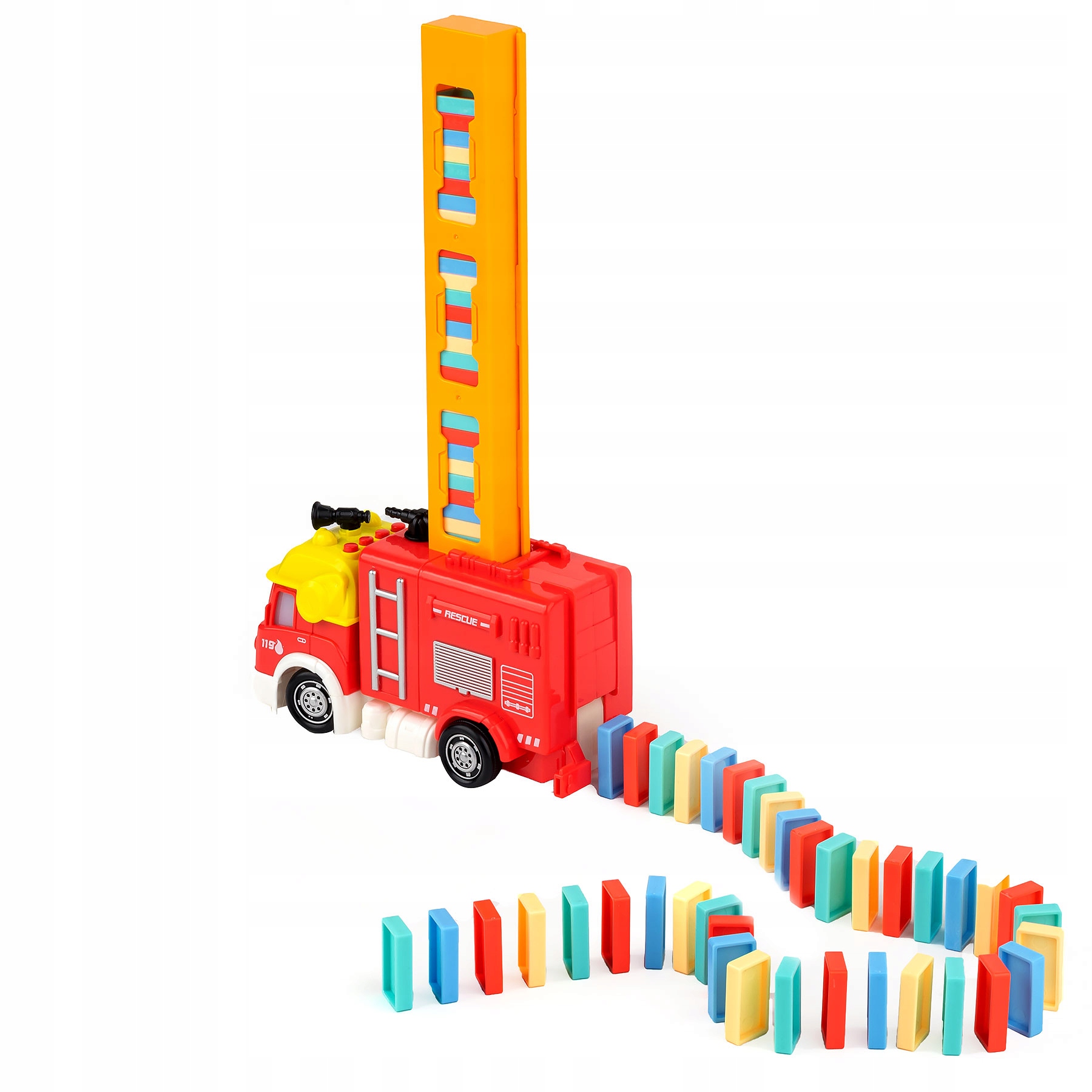 Пожежна машина, яка сама складає блоки доміно! Ця іграшка неодмінно порадує кожного любителя головоломок, і вона допоможе найменшим дітям вивчити кольори, розвинути творчі здібності, ручні навички та координацію очей і рук. Крім того, усі діти люблять пожежні машини, тож у нас є рецепт ідеальної іграшки.