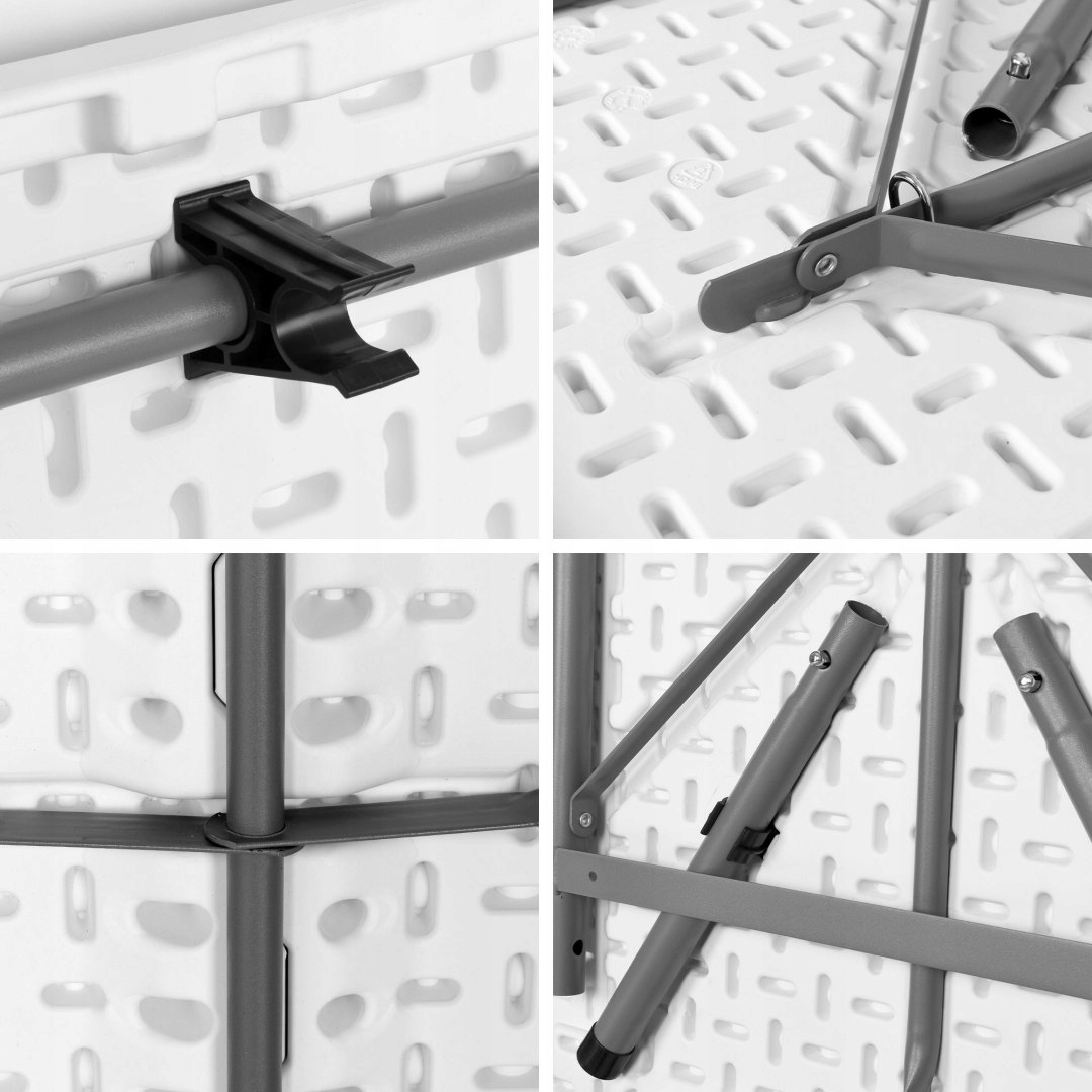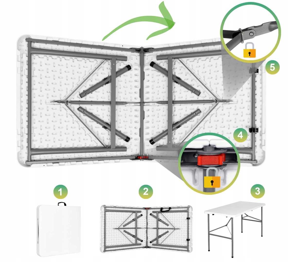 Ніжки столу мають нековзкі ніжки, що забезпечує стабільність і безпеку під час використання. Крім того, табурет оснащений замком від випадкового складання ніжок і подвійним замком проти складання верхньої частини, що забезпечує додаткову безпеку та безпеку.