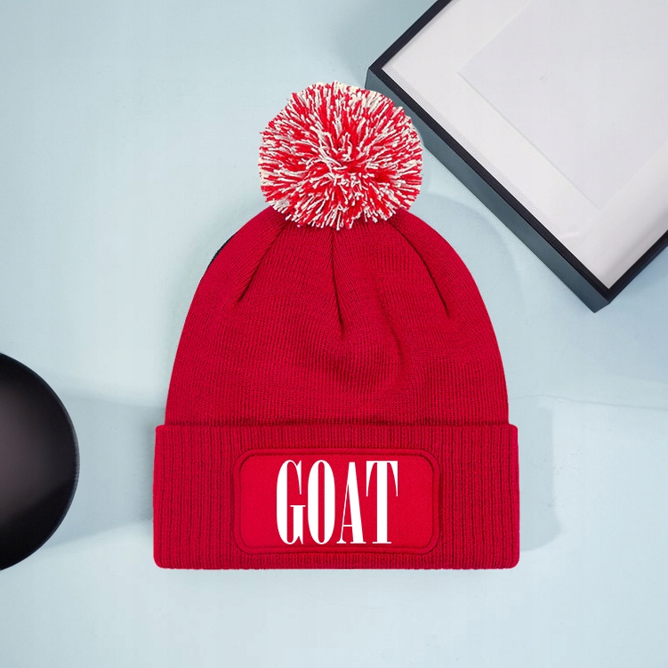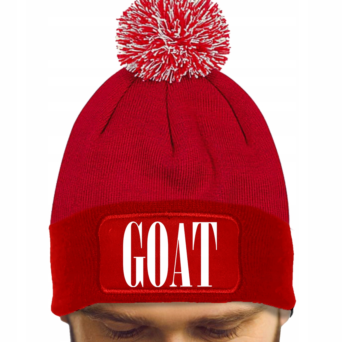 Червона чоловіча зимова шапка з помпоном і веселим, модним принтом Коза