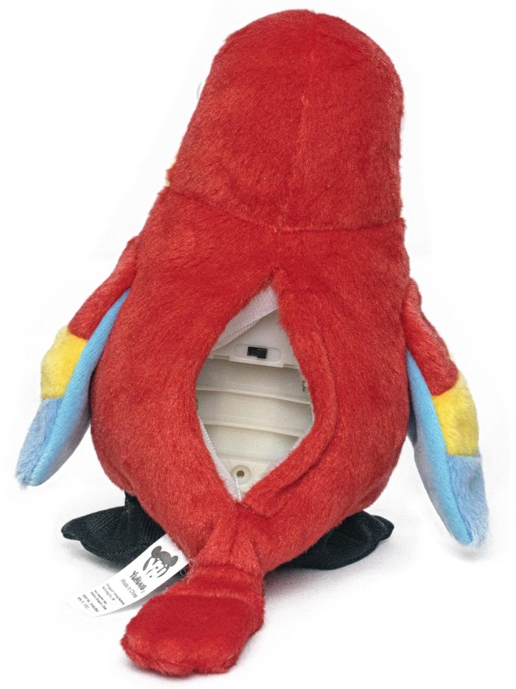 Червона папуга, що розмовляє, що повторюється музика, плюшевий талісман розмовляє