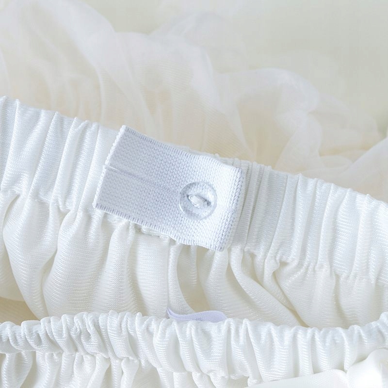 Зовнішній шар виготовлено з м’якої фатинової сітки, спеціально розробленої для забезпечення більшої гнучкості та комфорту при носінні. Порівняно з іншими моделями, спідниця відрізняється більшою щільністю фатину, який надає об'єм, але при цьому залишається легким і повітряним. Виробник також використав варіант із суцільного тюлю та модель зі з’єднанням, в обох випадках подбавши про естетику обробки та зручність використання.