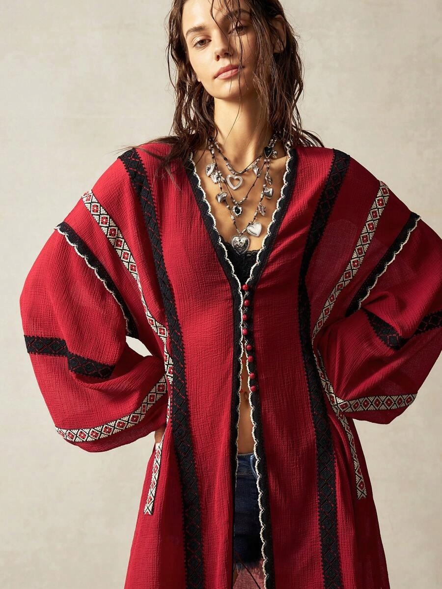 ЧЕРВОНЕ КЛАСИЧНЕ ПРОСТЕ ПОНЧО З ДОВГИМ РУКАВОМ SHEIN 38