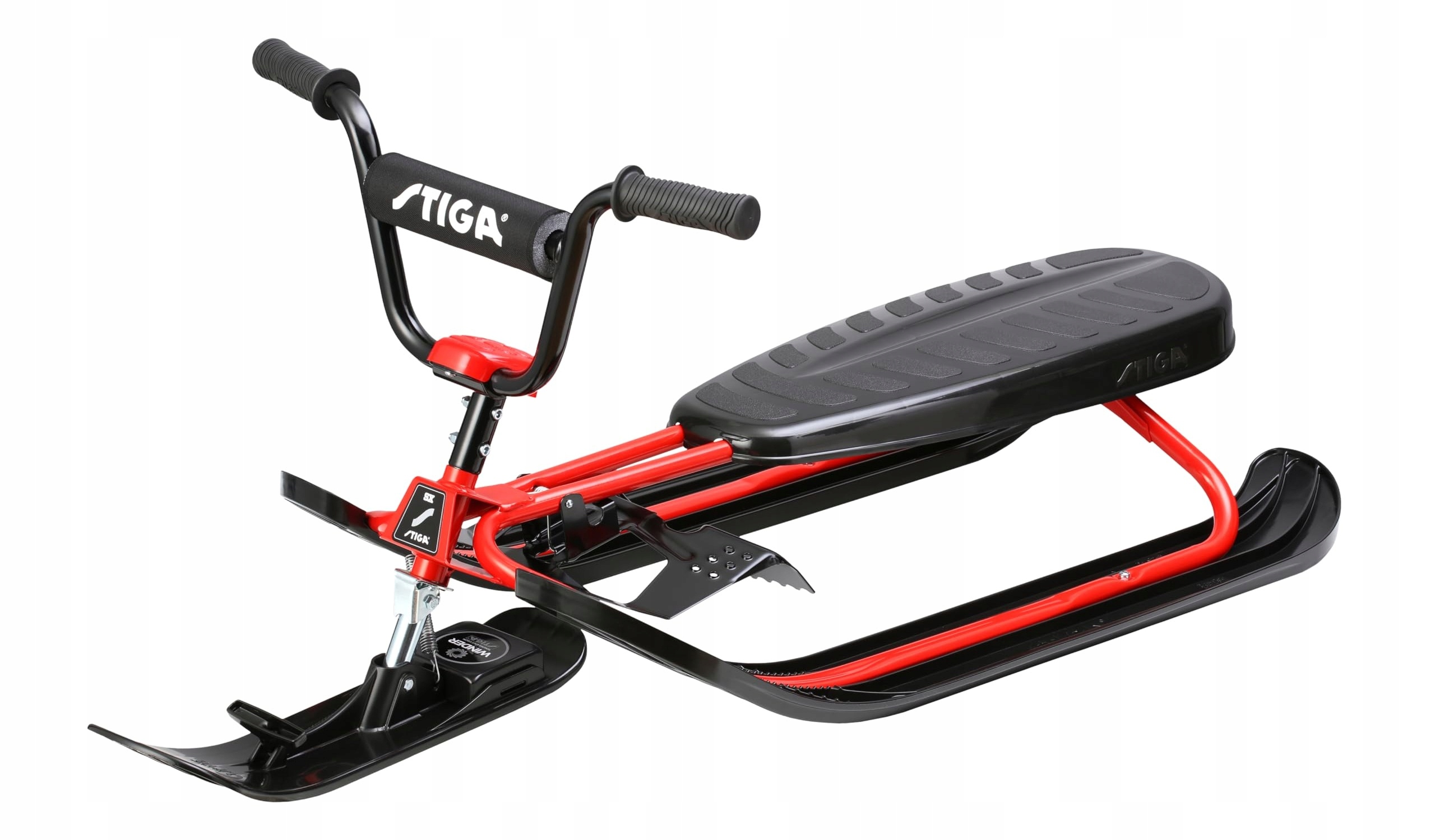 Лижі STIGA SX PRO є найвищою моделлю серед лиж, вона оснащена лижами Carvingove (краща керованість завдяки використанню обтічних лиж). Ця модель має велосипедне кермо, яке з усіх гірськолижних лиж STIGA є найбільш агресивними на снігу. Рама керма покрита захисною піною. Сталеві труби забезпечують міцну і стабільну конструкцію, а неблокувальні сталеві гальма забезпечують найвищу безпеку. У передній полозці є автоматичний мотальник шпагату. Ідеальний подарунок не тільки для найменших. Гірськолижні сани STIGA - гарантія чудового задоволення. Снігоступи мають чохол на сидіння, який робить поїздку приємнішою та захищає від холоду.