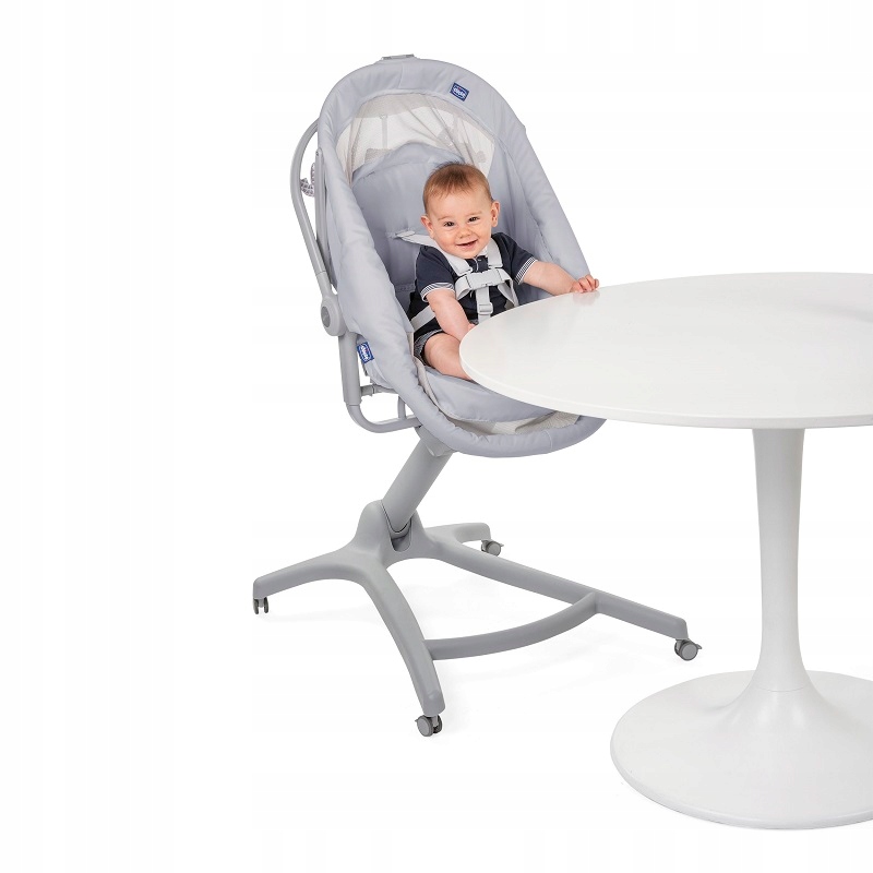 Починаючи з 6-го місяця, Baby Hug Air можна трансформувати в стільчик для годування, щоб полегшити розширення раціону вашої дитини. Опустивши Baby Hug Air до мінімального рівня, ми також отримаємо практичне крісло для старшої дитини, ідеальне для читання, малювання та ігор.