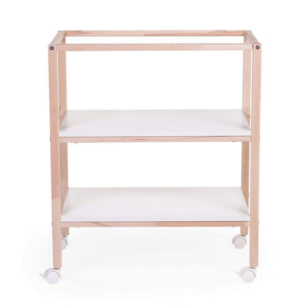 Практичний набір для купання та догляду Childhome, включаючи пеленальний столик і дитячу ванночку на дерев'яному каркасі. Підняті краї та міцна конструкція пеленального столика роблять його безпечним для дітей вагою до 11 кг. Після купання завдяки коліщаткам підставку з ванною можна легко засунути під пеленальний столик, заощадивши місце в кімнаті. Під ванною є дві практичні полички, на яких розмістяться всі косметичні засоби та аксесуари, необхідні для догляду.