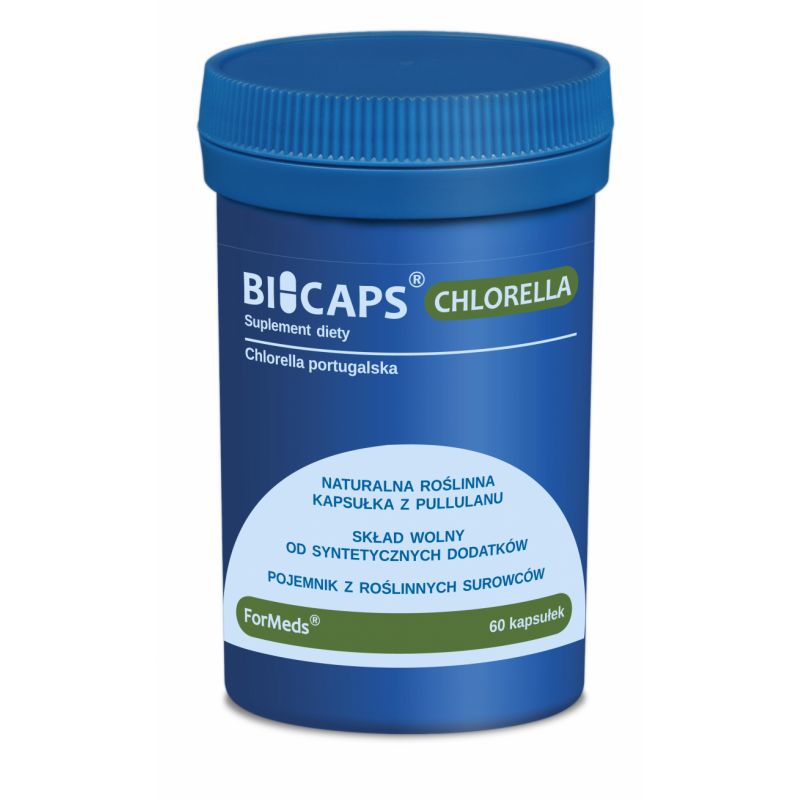 Bicaps Chlorella містить 530 мг хлорели португальської в 1 капсулі без будь-яких добавок. Продукт підходить для вегетаріанців і веганів.