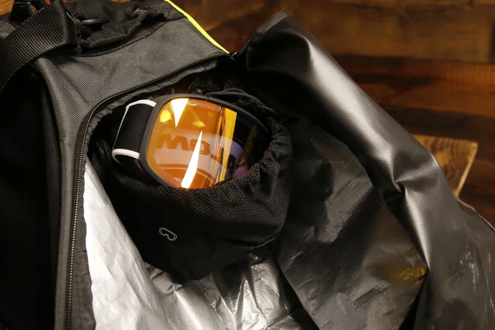 На чохлі також є невелика внутрішня кишеня для окулярів, яка дозволяє зручно зберігати дрібні аксесуари. Лижні черевики можна розмістити в двох незалежних, повністю водонепроникних і вентильованих відділеннях, які забезпечують повний захист від вологи та пошкоджень.