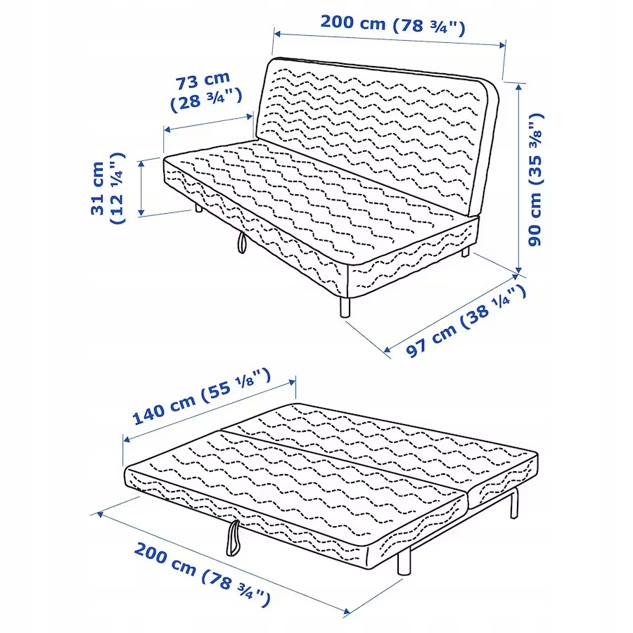 ✔ Нижче наведено діапазон розтягування наших чохлів у сантиметрах. Межа похибки становить +/- 2 см.