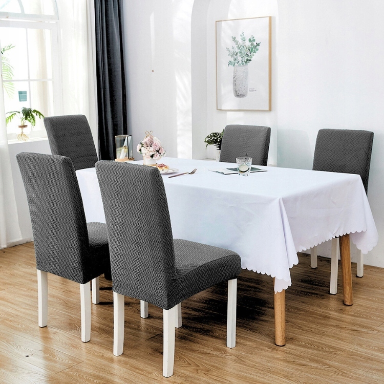 ЕЛАСТИЧНИЙ ЧОХАЛ НА СТІЛЬЦЕ ПРЕМІУМ ЖАККАРД ЯЛИНКА ДЛЯ ЇДАЛЬНОЇ ВІТАЛЬНІ, ТЕМНО-СІРИЙ