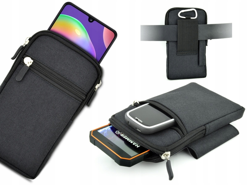 Кобура оснащена двома кишенями. У більший можна покласти телефон, застібається на двосторонню блискавку (в нього також можуть поміститися два смартфони, якщо їх загальна товщина не перевищує 2 см). Ця кишеня обшита губкою з обох боків, тому забезпечує чудовий захист телефону навіть у разі падіння.