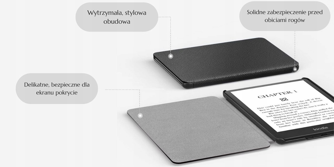 Захисний чохол має необхідні вирізи для роз'ємів і кнопок. Тільки так ми зможемо комфортно використовувати рідер, насолоджуючись його повним захистом. Якщо помістити рідер у футляр, він залишиться легким і зручним пристроєм, а читання стане ще зручнішим, а зчитувач міцно тримається.