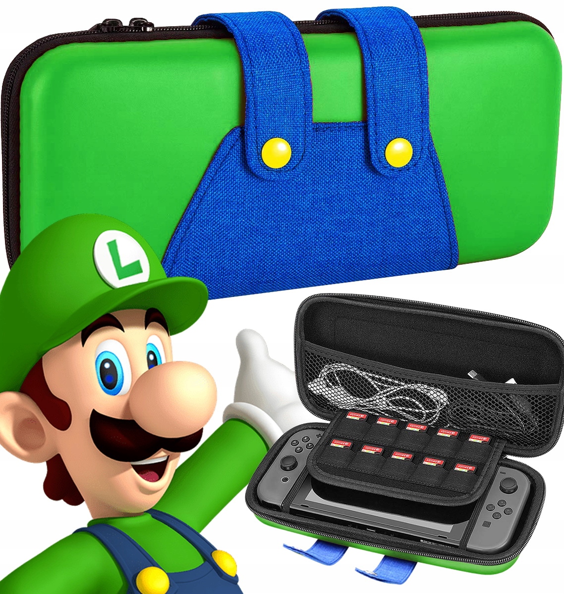 Чохол ідеально підходить до вашої консолі Nintendo Switch і OLED Nintendo Switch — він ідеально захищає її. Всередині є спеціальні відділення для 10 ігрових картриджів. У верхній частині чохла є спеціальне місце для зберігання консольних аксесуарів, таких як зарядний пристрій, павербанк, навушники, ігрові коробки тощо.