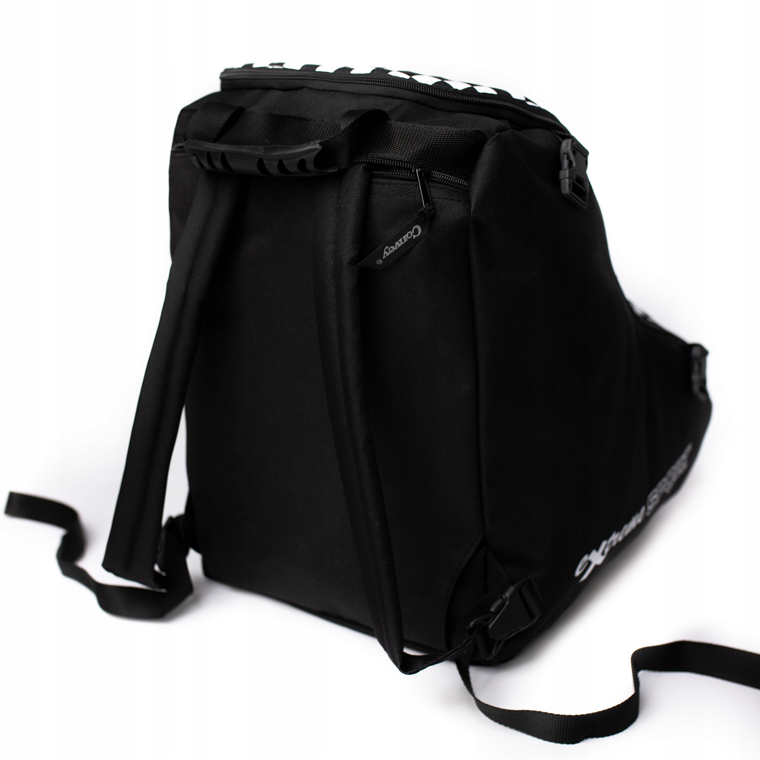 Чохол ідеальний для зберігання та зручне перенесення лижних черевиків. Виготовлений з водонепроникного і стійкого до стирання матеріалу кодура. Чохол дуже легкий і в складеному вигляді не займає багато місця. Має містке основне відділення, що застібається на двосторонню блискавку з язичком, що дозволяє легко відкрити чохол в рукавичках. Ручка зверху дозволяє повісити чохол. Оснащений регульованими підтяжками ззаду, які можна сховати. Чохол можна носити як рюкзак або в руці. Рюкзак ідеально підходить для людей, які займаються зимовими видами спорту і в літній сезон, наприклад, як рюкзак для роликових ковзанів. Чохол оснащений кріпленою сіткою для шолома.