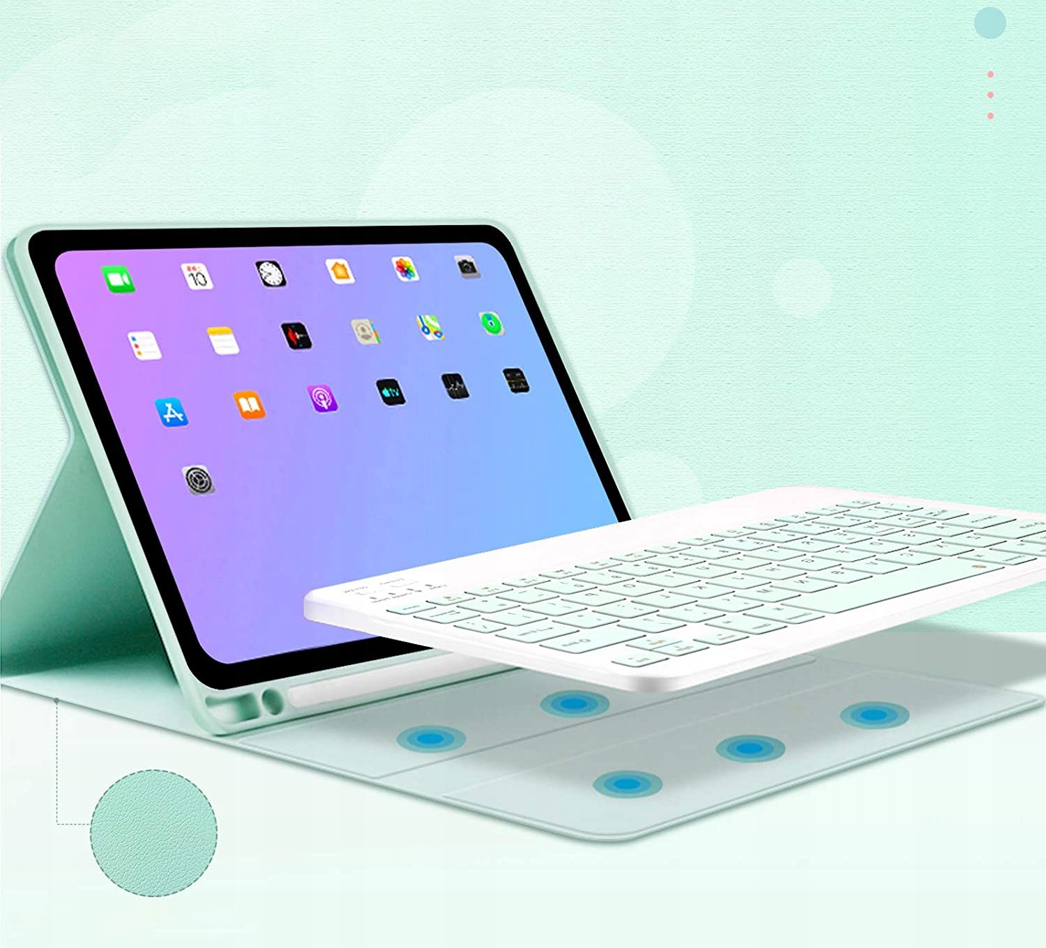 Бездротова Bluetooth клавіатура дуже високої якості, з польськими символами. У чохлі є магніт, який з'єднує клавіатуру з чохлом. Крім того, у футлярі є спеціально виділені місця для стилуса.