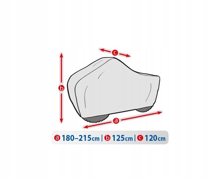 Целирічний водонепроникний чохол для захисту квадроцикла, який зберігається на вулиці, від несприятливого впливу навколишнього середовища. Завдяки особливій конструкції під час дощу вода стікає по кришці, не проникаючи під кришку, а водяна пара виводиться назовні. Він захищає квадроцикл від дощу, снігу, морозу та сонячного світла (шкідливого ультрафіолету), а також забруднюючих речовин, таких як пил, пташиний послід і деревний сік. Обмежує корозію та старіння пластикових елементів, захищає від вицвітання та матування фарби та хромованих елементів. Покриття повністю стійке до будь-яких погодних умов. Він кріпиться за допомогою еластичного шнурка, що дозволяє легко одягати та знімати. Також підходить для використання всередині приміщень.