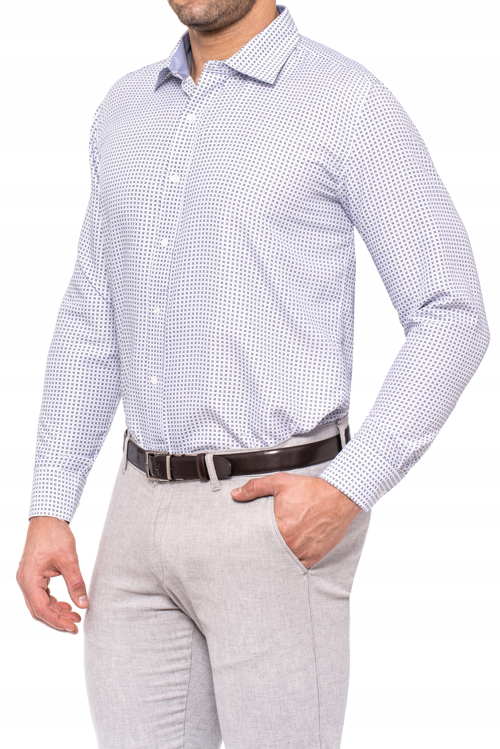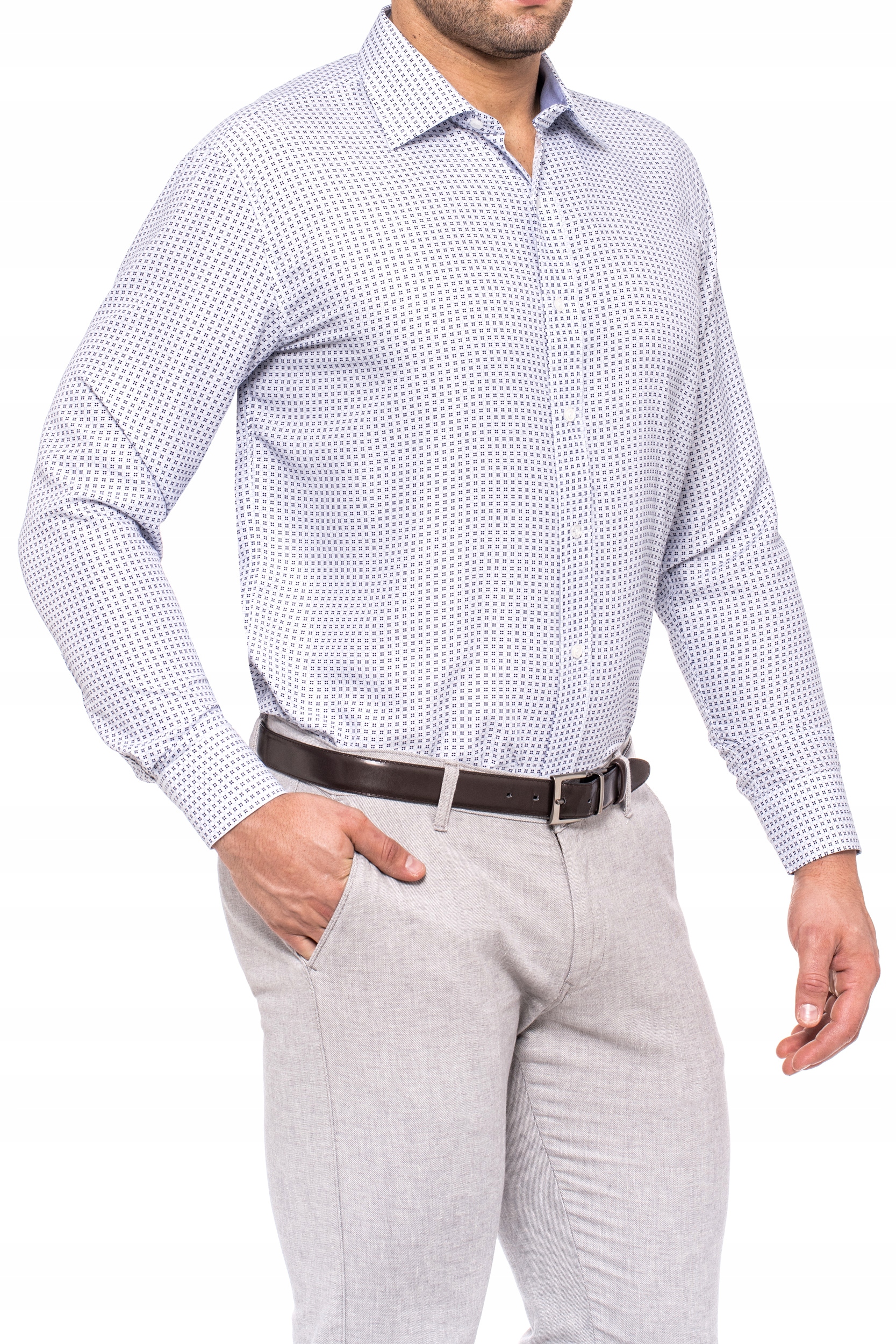 Модель: Біла чоловіча сорочка з візерунком