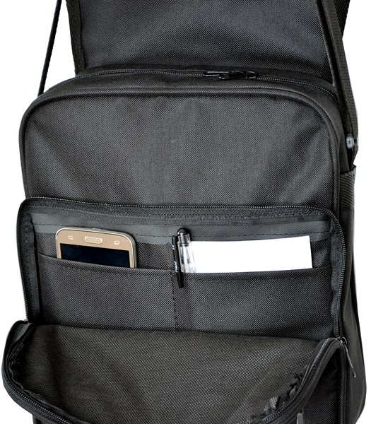 - Всередині однієї з кишень є міні-органайзер, який містить, зокрема: телефон, ручки та інші необхідні речі для щоденного використання.