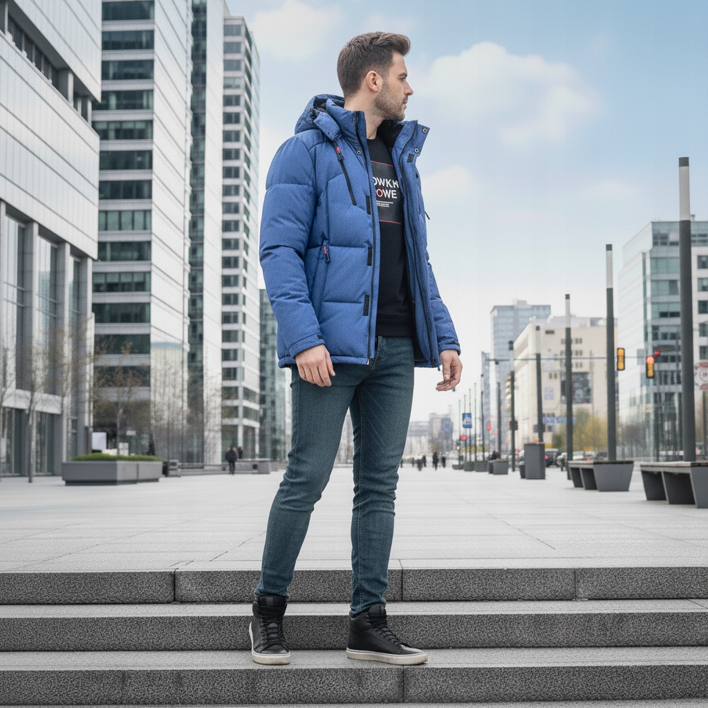 ЧОЛОВІЧА УТЕПЛЕНА ЗИМОВА КУРТКА ЗІ ЗНІМНИМ КАПЮШОНОМ 013 FKOW BLUE - L