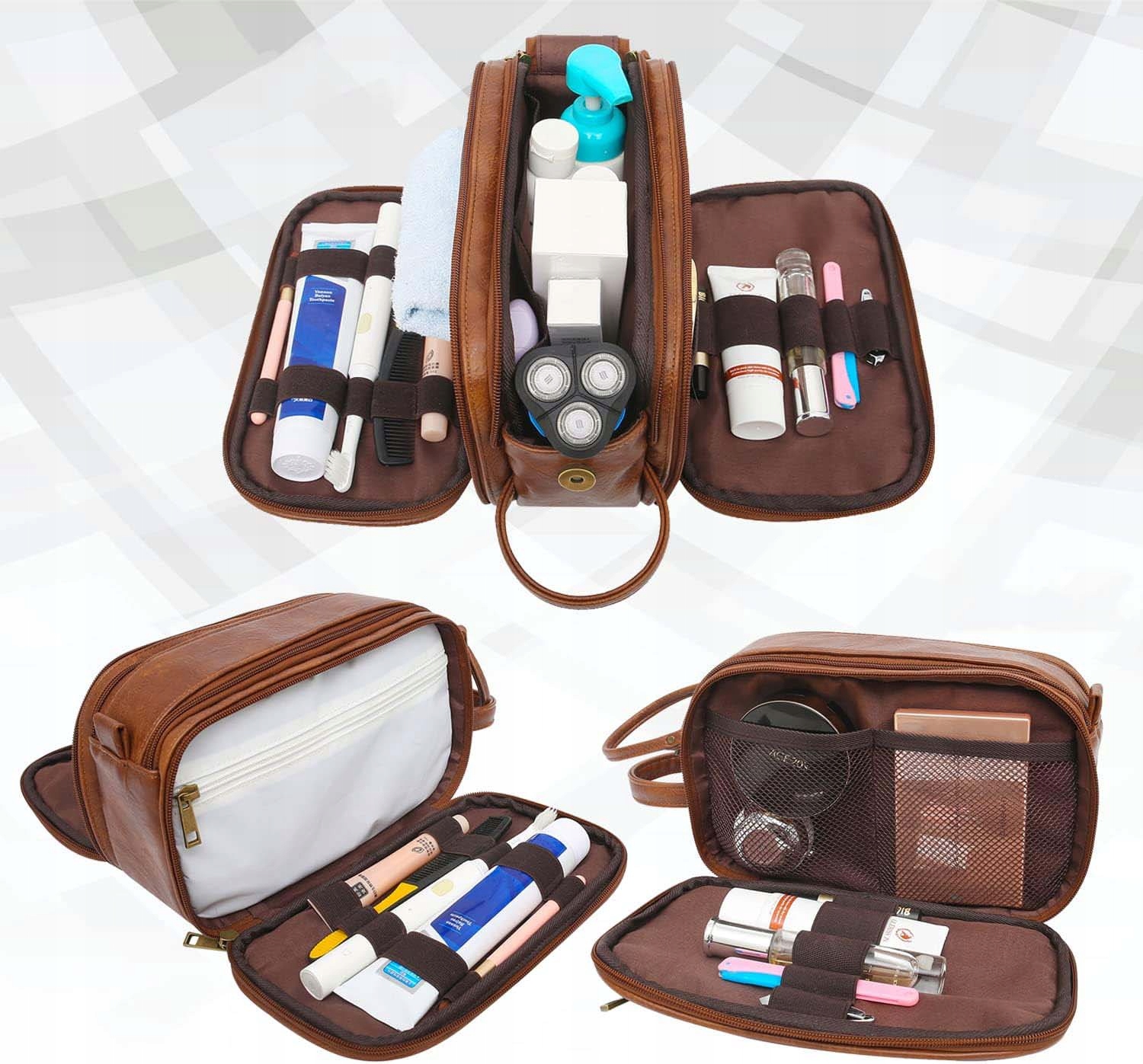 - Водонепроникна внутрішня підкладка, не турбуйтеся про перенесення рідини чи гоління, просто витріть, виперіть і ваша чоловіча туалетна сумка знову буде працювати.