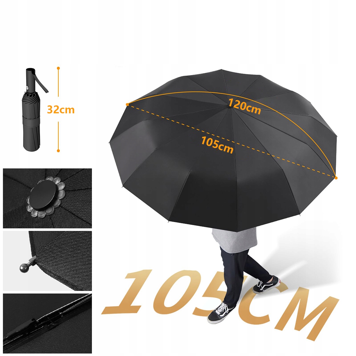 ПОРТАТИВНИЙ ТА СКЛАДНИЙ: складна парасолька, стійка до шторму, має діаметр приблизно 40 дюймів у розкритому вигляді. і забезпечує достатньо місця для двох людей. Не дозволяйте громіздким і непрактичним парасолькам діяти вам на нерви! У складеному вигляді чорна парасолька має довжину приблизно 32 см і важить приблизно 460 г, що дозволяє її легко носити. Він легко поміститься в рюкзаки, сумочки, портфелі або валізи. Тому це ідеальний вибір для жінок і чоловіків.