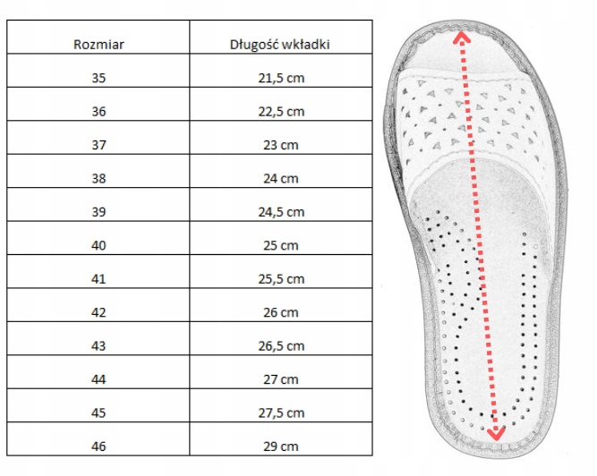 ✅ Вказана довжина устілки відноситься до розміру від великого пальця ноги до кінця каблука (червона стрілка).