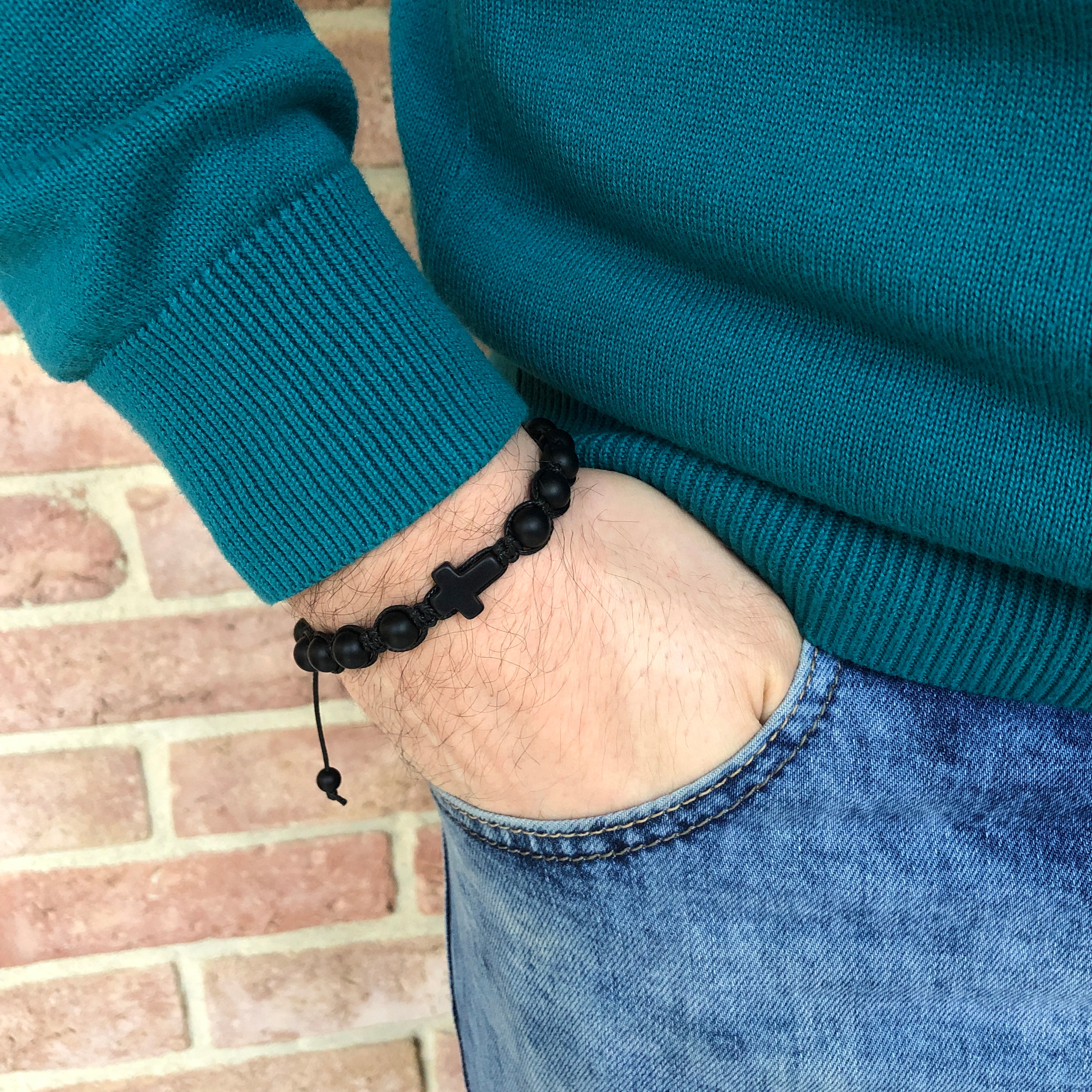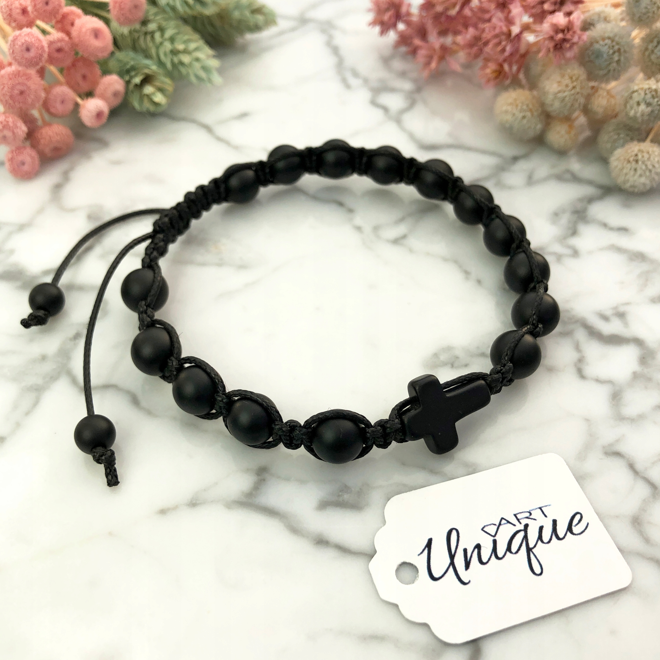 Чоловічий браслет РОЗАРІЙ з десятком каменів з ОНІКСУ