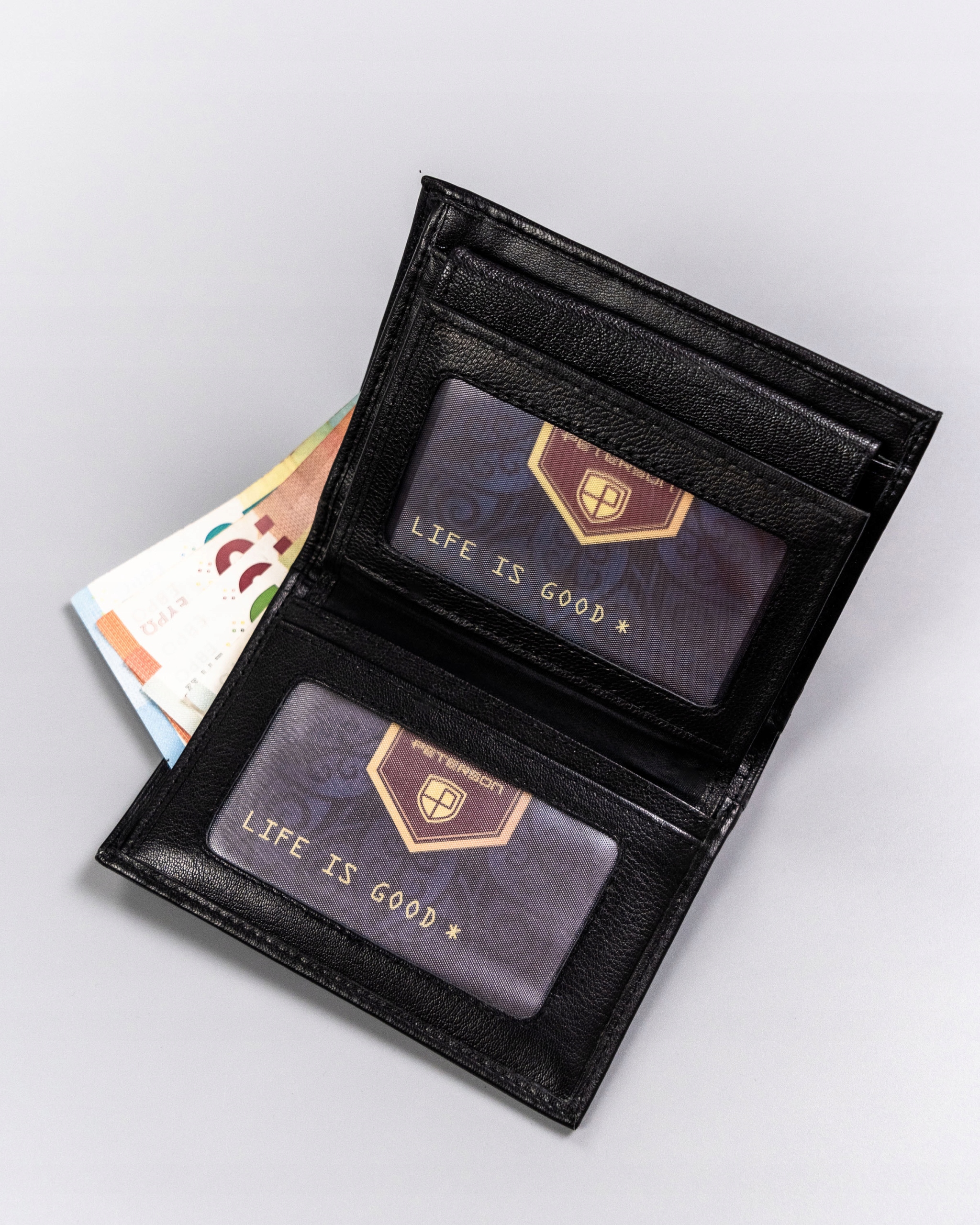 Гаманець має спеціальну підкладку з мікрофібри з покриттям, оснащену технологією RFID BLOCKING SYSTEM (Radio-Frequency IDentification). Він захищає безконтактні картки, біометричні документи, ідентифікаційні картки та картки громадського транспорту від несанкціонованого зчитування даних. (Підкладка RFID BLOCKING SYSTEM запобігає зчитуванню даних за допомогою спеціальних зчитувачів, які використовуються для викрадення даних).