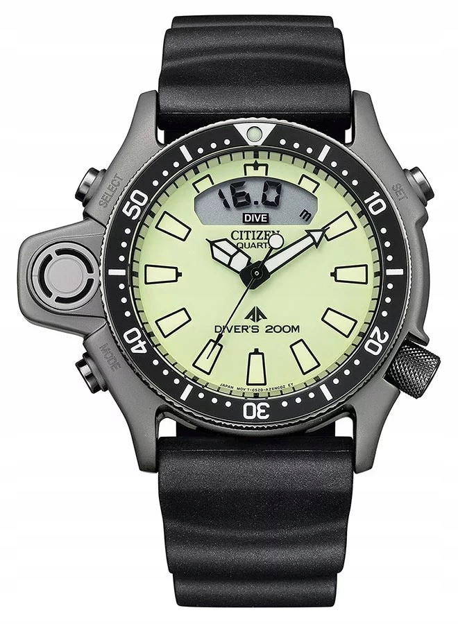 Citizen Promaster JP2007-17W – це годинник для чоловіків, які шукають спортивний аксесуар. Пристрій оснащений глибиноміром, сигналізатором, сигналом про низький заряд батареї, числом місяця, числом тижня і секундоміром. За точність часу відповідає кварцовий механізм Citizen Miyota C520. Оцінка водостійкості становить 20 атм.
