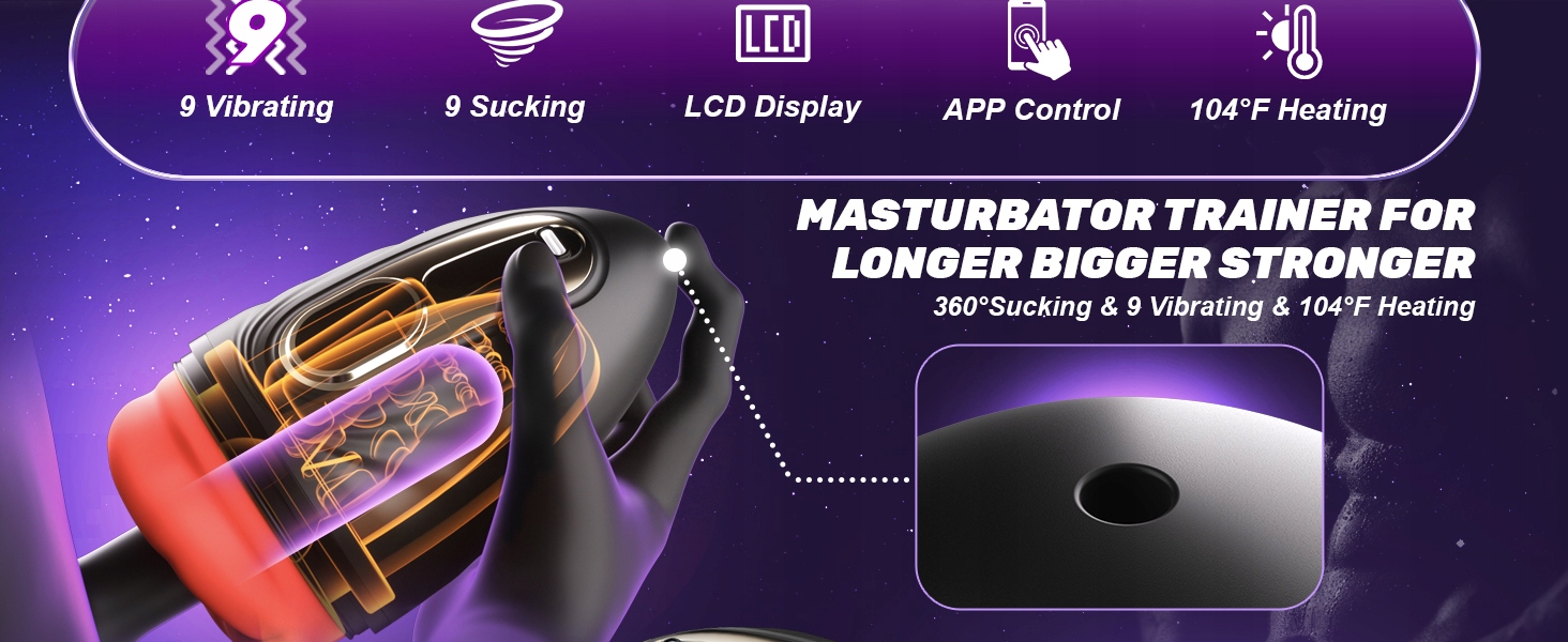 ТРЕНАЖЕР ДЛЯ МАСТУРБАЦІЇ ДЛЯ ДОВШОГО БІЛЬШЕ СИЛЬНЕ 360° смоктати та 9 вібрувати та 104°F Нагрівання