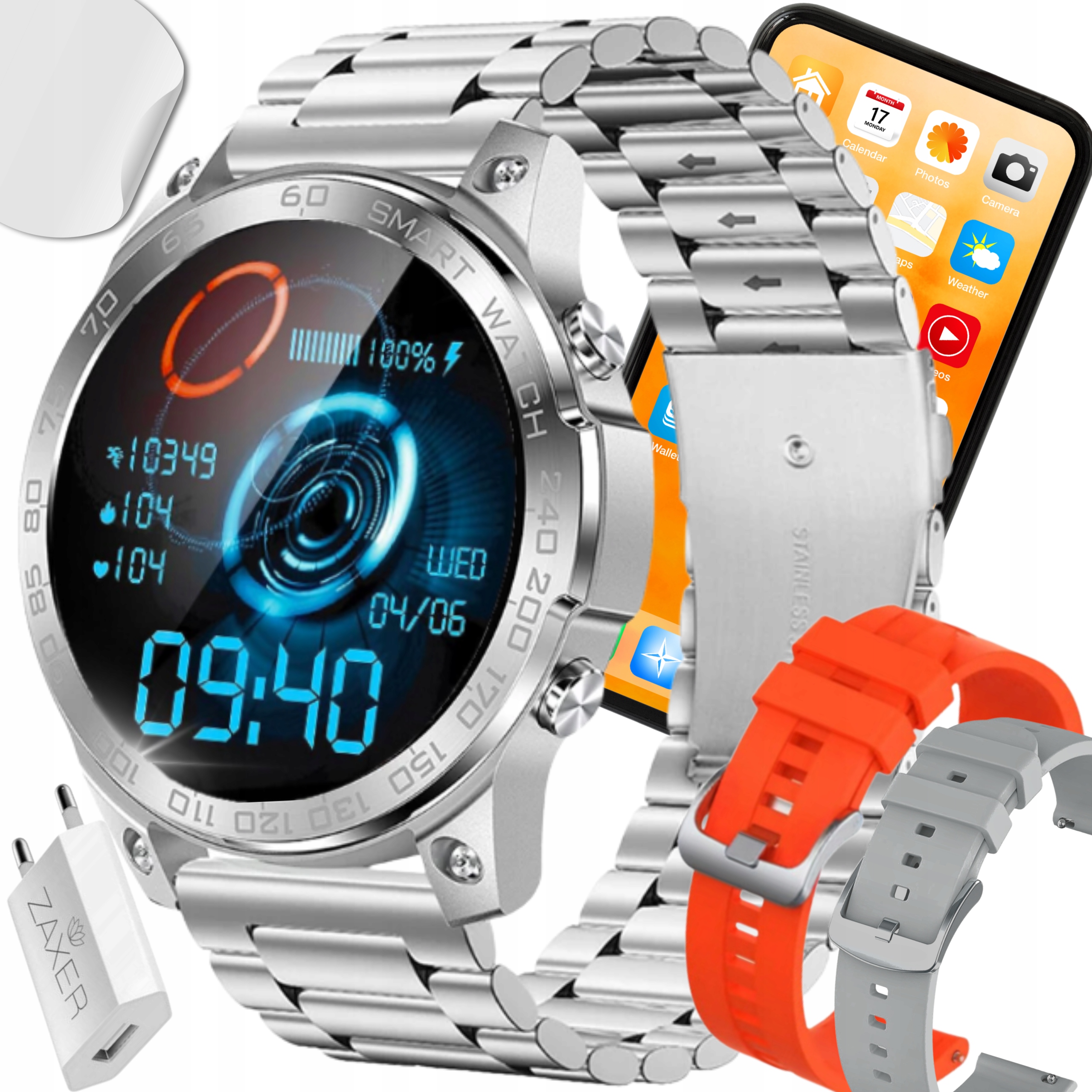 ЧОЛОВІЧИЙ РОЗУМНИЙ ГОДИННИК AMOLED З ФУНКЦІЄЮ РОЗМОВИ PULSE ПОЛЬСЬКОЮ 3 СМУЖКИ