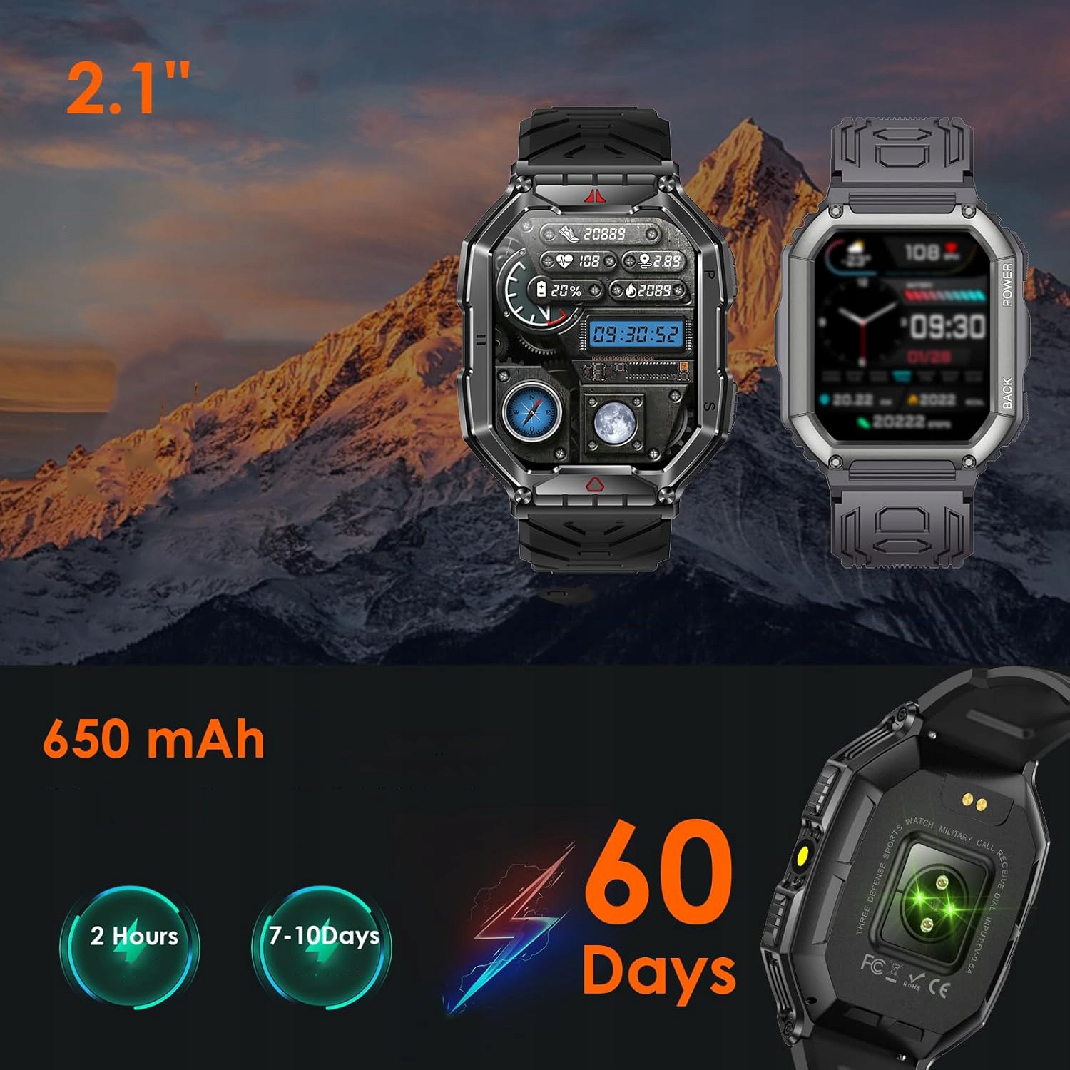 - ☑️Військовий розумний годинник пройшов багато військових випробувань, зокрема морозостійкість до -40 °C, термостійкість до 70 °C, ударостійкість, водонепроникність та < b >Стійкість до пилу та соляного туману, що робить його ідеальним вибором для використання в складних умовах.