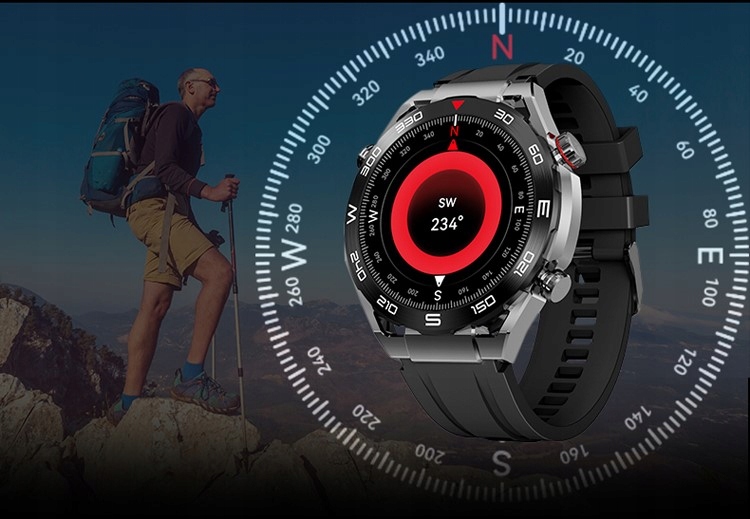Розумний годинник із вбудованим компасом — чудова функція, особливо для людей, які люблять активний відпочинок. Завдяки цьому ви легко зорієнтуєтесь на місцевості та перевірите напрямок, у якому рухаєтесь. Іноді це може стати в нагоді, особливо коли ви досліджуєте нові місця або займаєтеся спортом на свіжому повітрі.