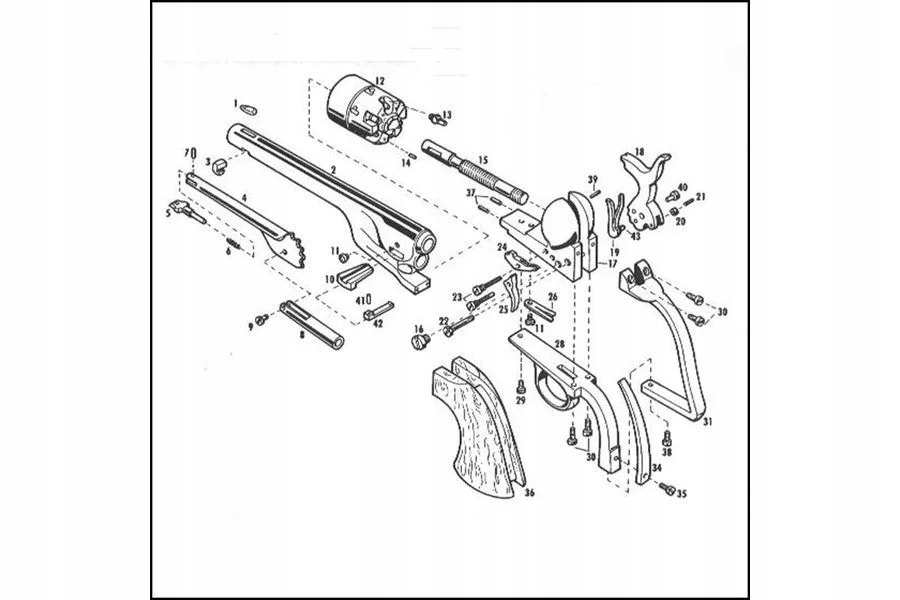 Револьвер має зчеплення внизу, щоб прикріпити додаткову постійну дерев’яну колбу - ASS44 (армійський плечовий запас).