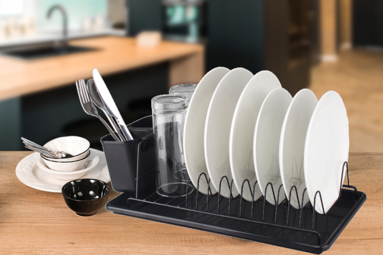 ✅Металевий, чорний каркас чудово впишеться в інтер'єр будь-якої кухні. Ручки мають закруглені та гладкі краї, що робить їх зручними у використанні. Вся металева конструкція пофарбована порошковою фарбою в єдиний колір - чорний. Все це чудово виглядає на кухні і відмінно виконує свої функції. Посуд швидко висихає на сушці, а завдяки водозбірній подушечці сушарку можна розмістити практично будь-де.