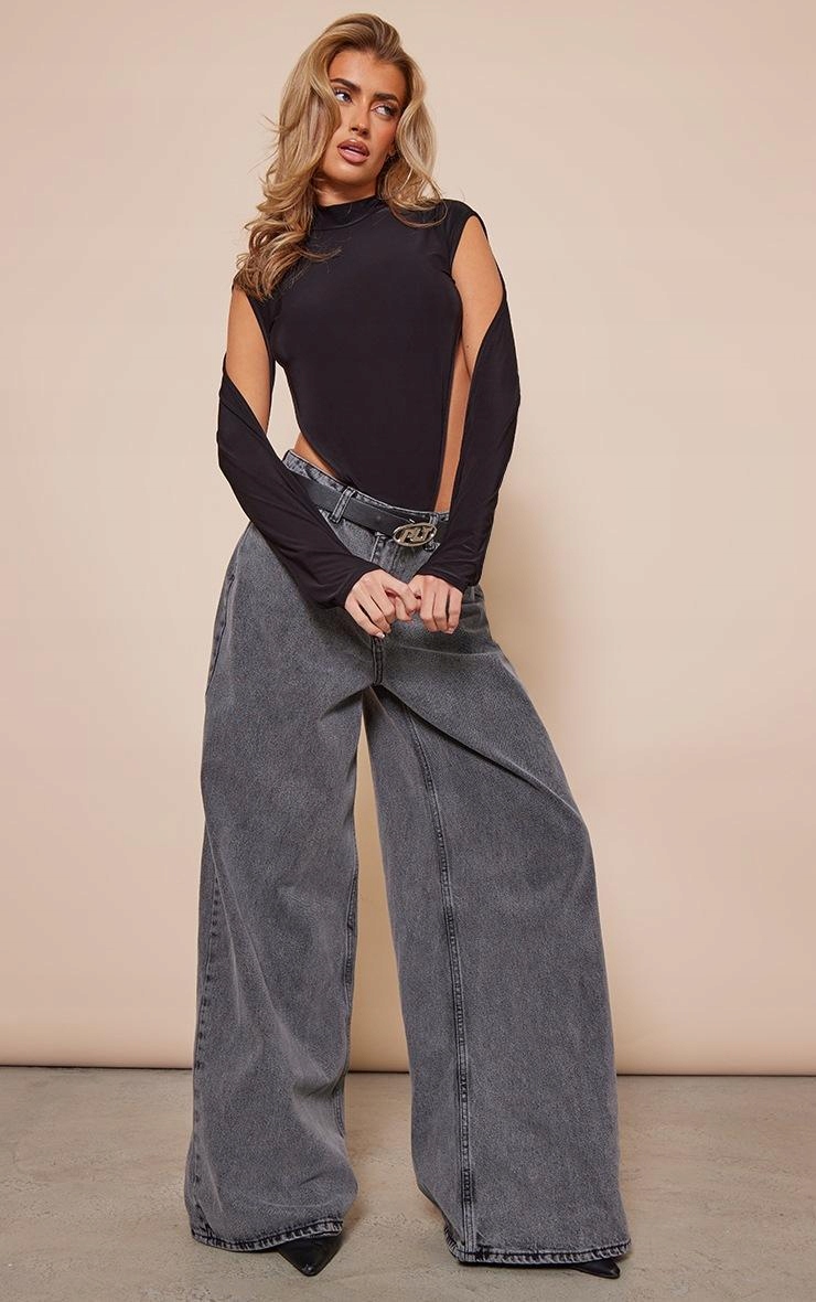 ЧОРНЕ ОБЛИГАЛЬНЕ ГЛАДКЕ БОДИ З ДОВГИМ РУКАВОМ PRETTYLITTLETHING 40