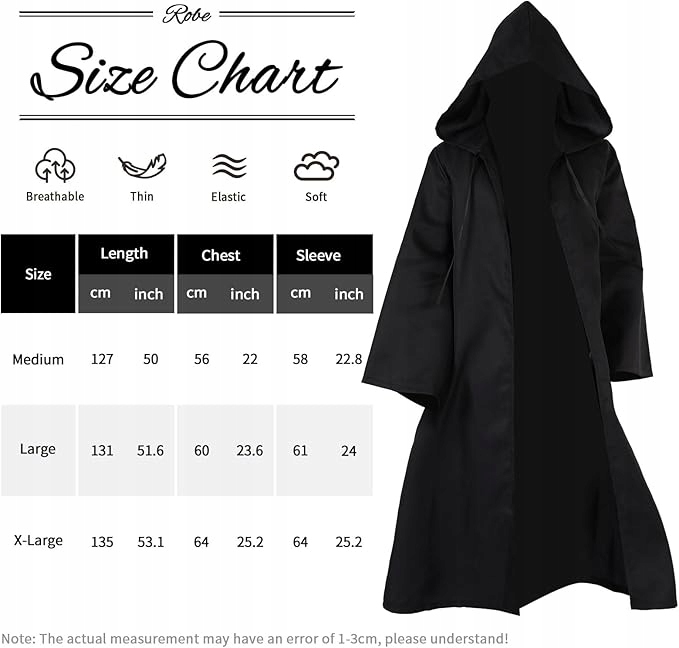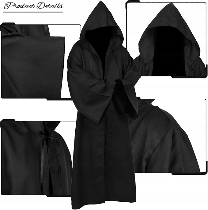 Чорне пальто з капюшоном, наряд Хеллоуїн-Міч/священик/джедаї