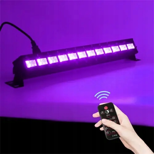 - Сильне світлодіодне освітлення UVLAMP UV SLED оснащене 12 3 Вт світлодіоди, що дає загальну кількість потужності 36 Вт. Довжина хвилі становить 395–400 нм, що забезпечує відмінний флуоресцентний ефект. Кут освітлення на 120 ° робить світло великим простором, ідеально підходить для клубів, подій, сцен та прикрас.