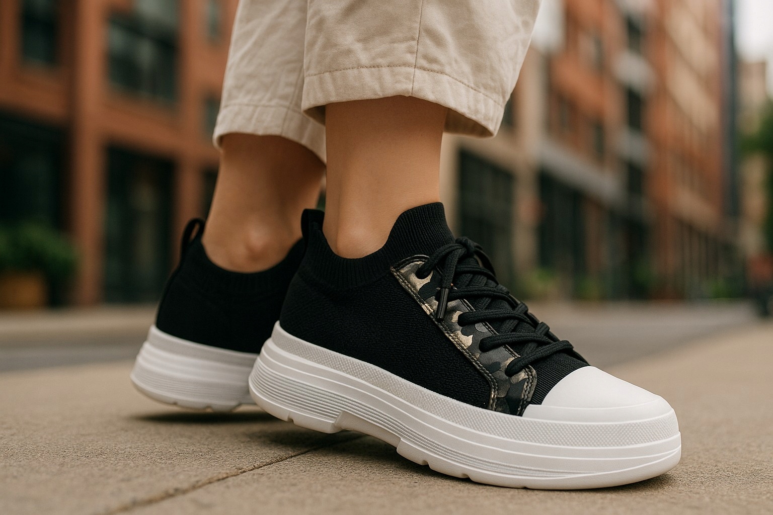 Жіночі кросівки на платформі - Чорне мереживо -up 2>