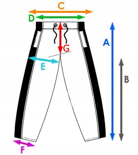 - довжина штанин від промежини B (см)-76