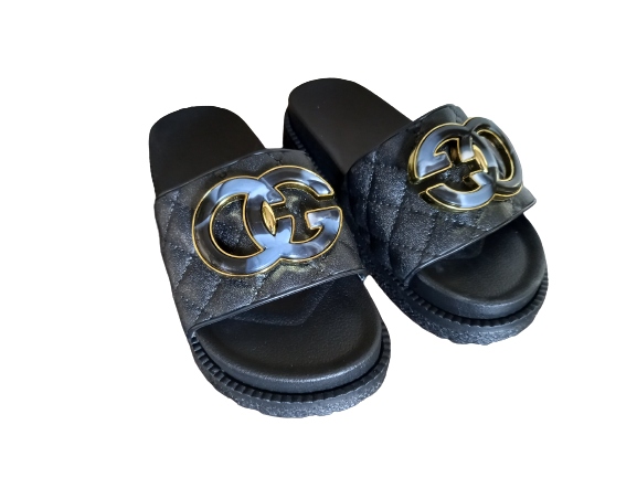 ЧОРНІ СТЬОБАНІ ТАПОЧКИ -38- ГУМОВІ ТАПОЧКИ З ЛОГОТИПОМ CHANEL