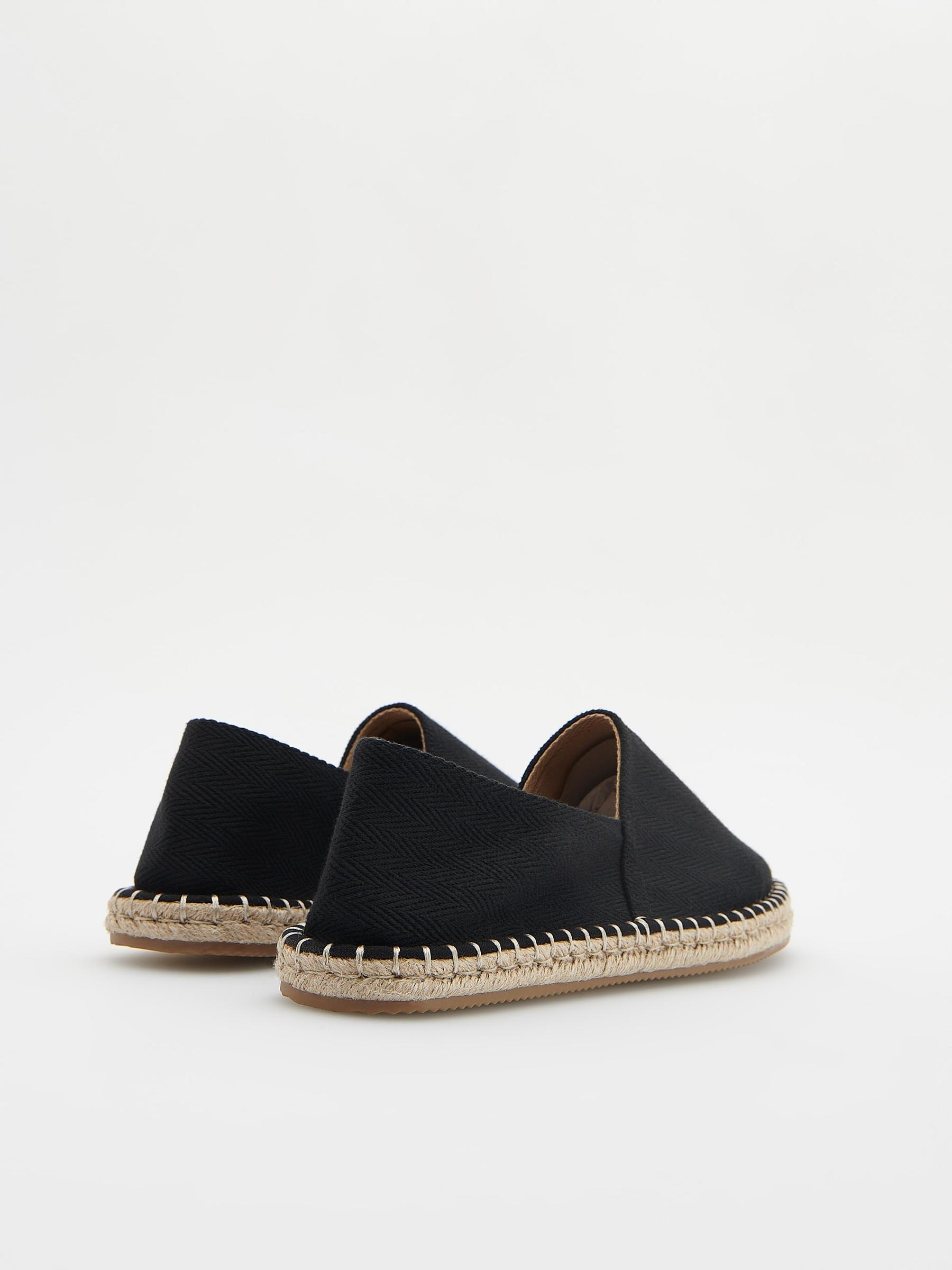 ЧОРНІ ВЗУТТЯ БАВОВНЯНІ ЕСПАДРІЛЬЇ, З БРІДКОЮ, ГУМОВА ВСТАВКА, ПІДОШВА 43
