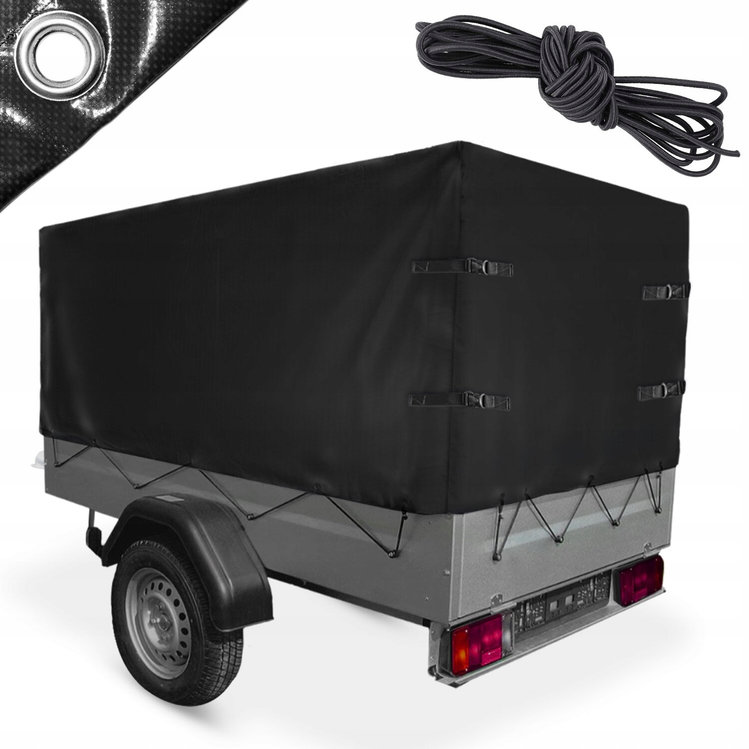 Захистіть навантаження під час транспортування за допомогою брезенту для причепа. Це аксесуар, який повинен кожен власник причепа, щоб захистити навантаження від будь -яких погодних умов під час транспорту та можливих збоїв. Кожна сторінка була зміцнена круглими очима з алюмінію діаметром 12 мм, щоб ви могли за допомогою гнучкого кабелю для прикріплення брезенту до причепа. Задня частина брезенту має чотири кріпильні ремені, які захищають товари та дозволяють легко отримати доступ під час завантаження та вивантаження. 750, An750