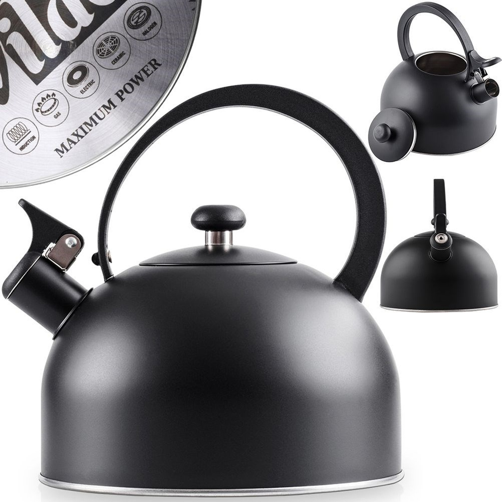✅ сталь - класичний чайник з найвищої якості нержавіючої сталі. Зберігайте в чорному, матовому кольорі. Нержавіюча сталь довговічна і нейтральна для нагрітої води, вона жодним чином не впливає на її властивості. У ньому нахилений свист і знімну кришку. Чайник має загальну потужність 3 л і висота 22,5 см, корисна ємність - 2,3 л.