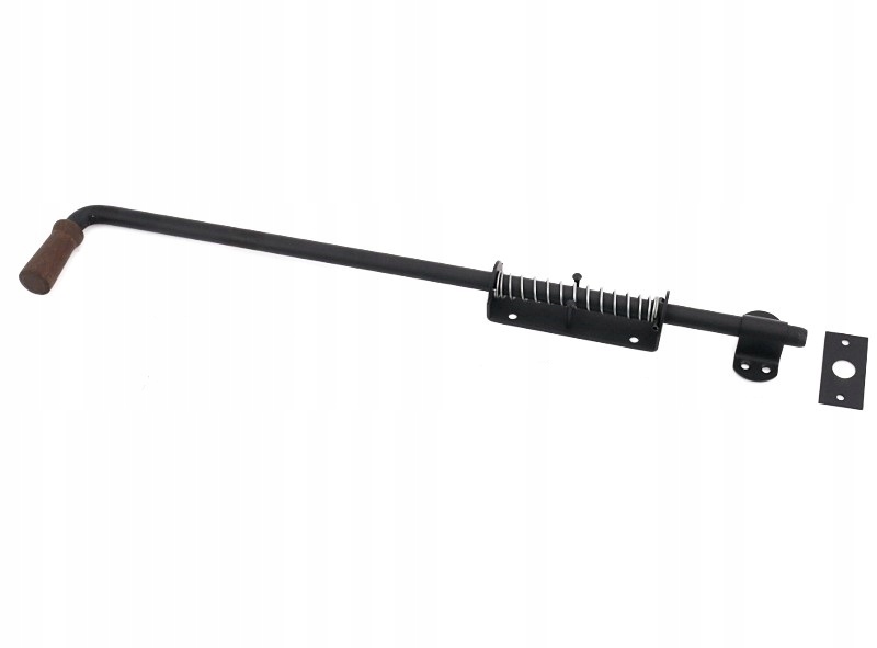 Боллі -пружини, встановлений порошок, намальований чорним кольором. Сильна пружина з замком болта, профілена дерев’яна ручка. Підходить для монтажу у воротах, садових воротах, дверях. Доступні різні довжини.