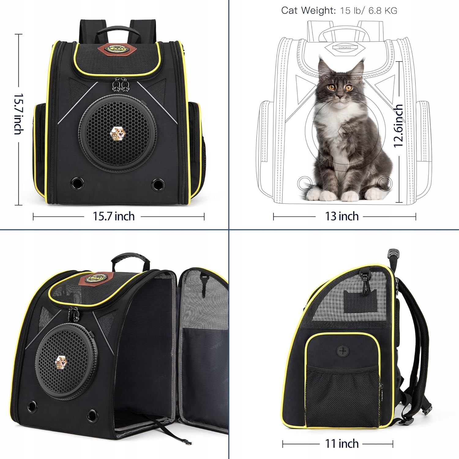 - [Багатофункціональна конструкція]: рюкзак для тварин має мішок для води, мішок для сміття, сумка для закусок та прозорі картки з обох сторін, в якій ви можете розмістити карту з інформацією про тварину та контактних деталей власника. Крім того, цей рюкзак для подорожей оснащений двома чорними розкладними мисками для собак та двома мішками для котів. З кожного боку є два гачки для мішків для собак, до яких можна перемістити їжу.