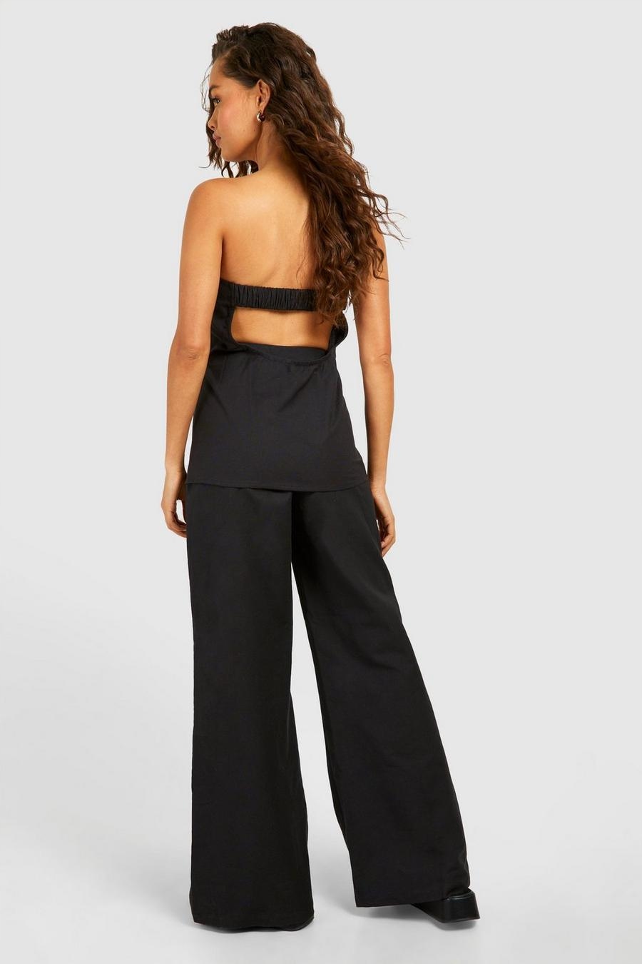 ЧОРНИЙ ГЛАДКИЙ ТОП БУХУ З ВИКРИТИМИ ПЛЕЧАМИ БЕЗ БРЕТЕЛЬ 36