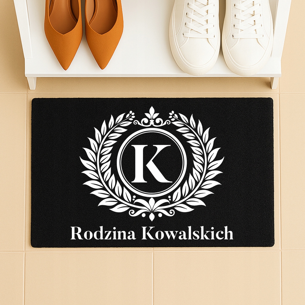 ЧОРНИЙ КИЛИМОК 40X60 ВАШІ ІНІЦІАЛИ ПЕРСОНАЛІЗОВАНИЙ БУДИНОК МОНОХРОМ ТРЕНД