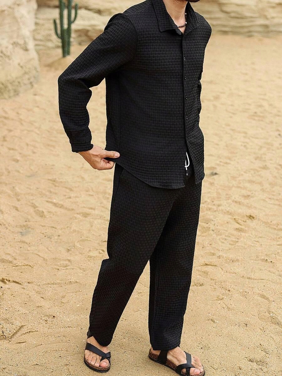ЧОРНИЙ КЛАСИЧНИЙ ТЕКСТУРНИЙ КОМПЛЕКТ ПРЯМІ ШТАНИ СОРОЧКА MANFINITY M