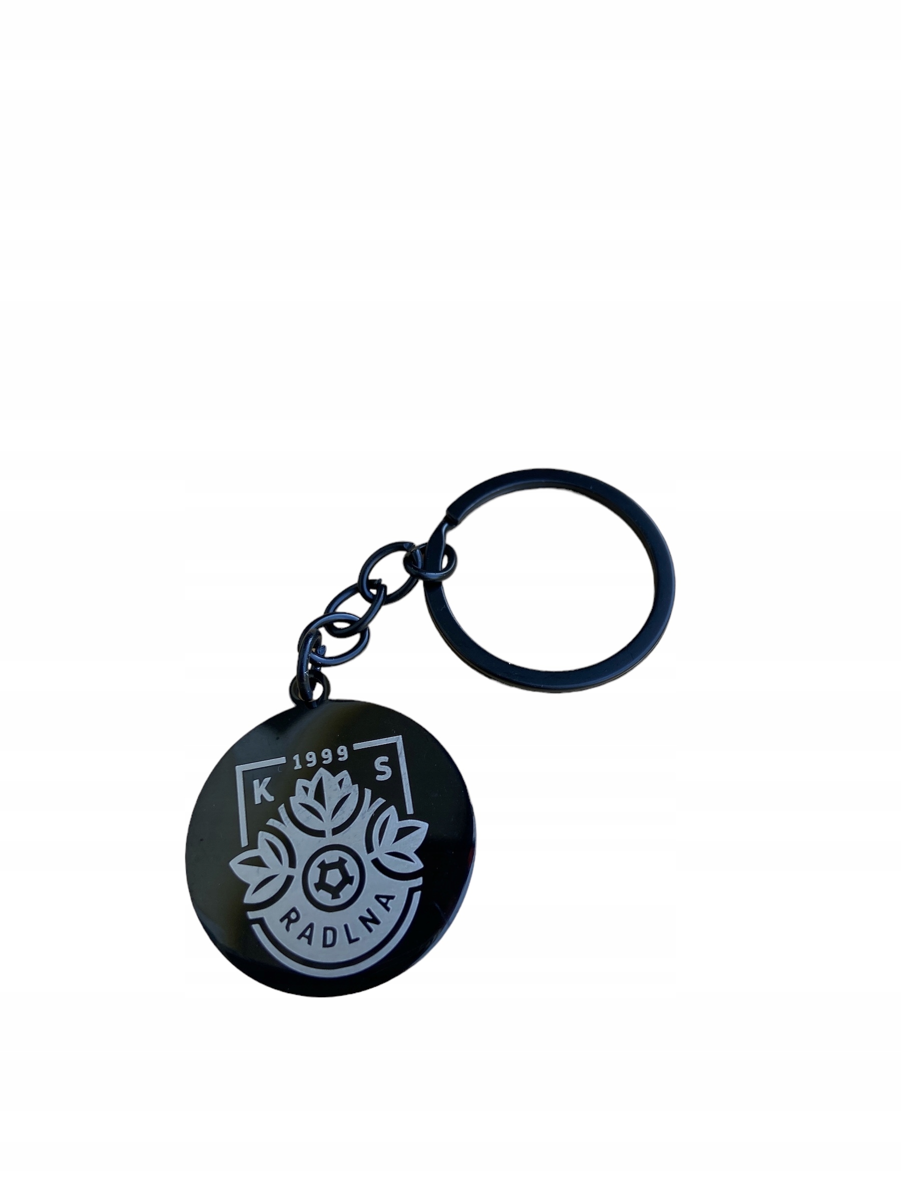 Чорний металевий рекламний брелок з гравіюванням ЛОГОТИПУ, упаковка 10 шт