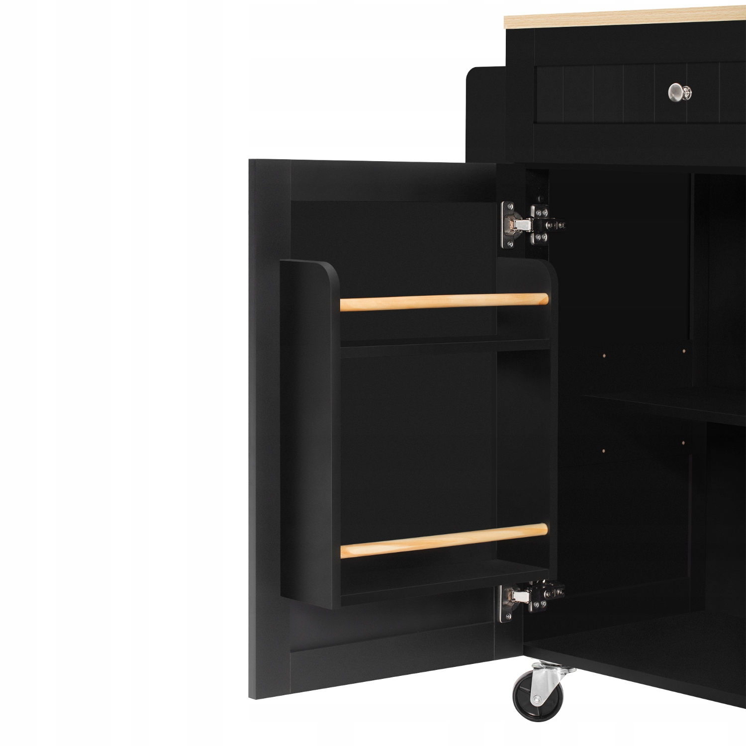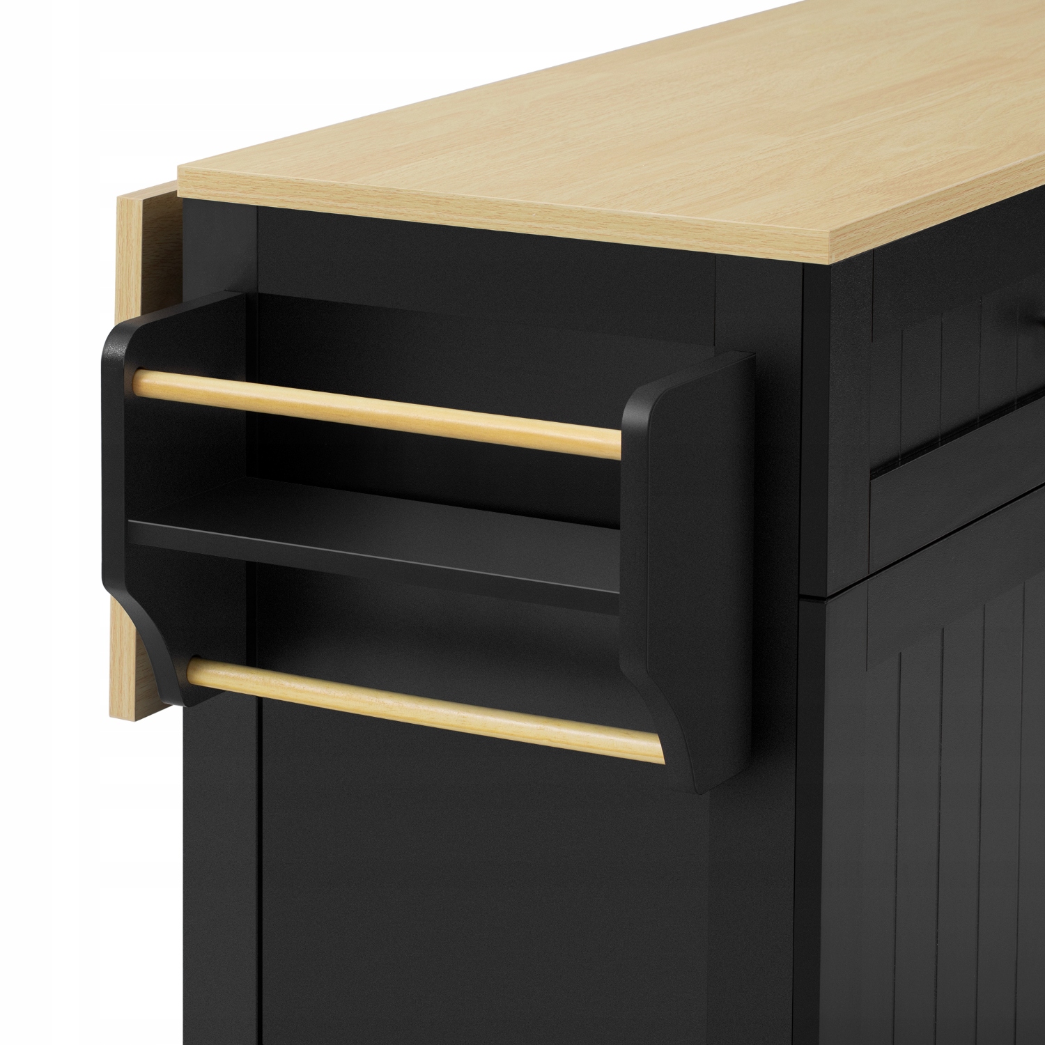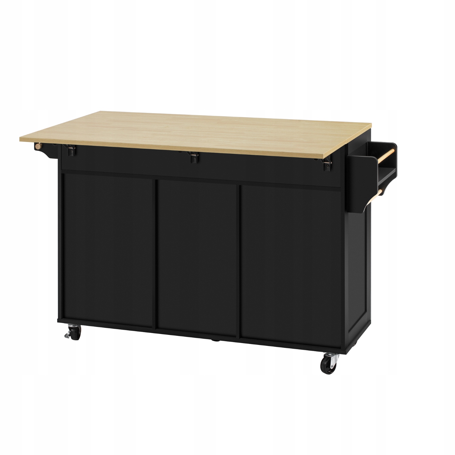 Чорний мобільний кухонний острів - висувна обідня зона + ящики